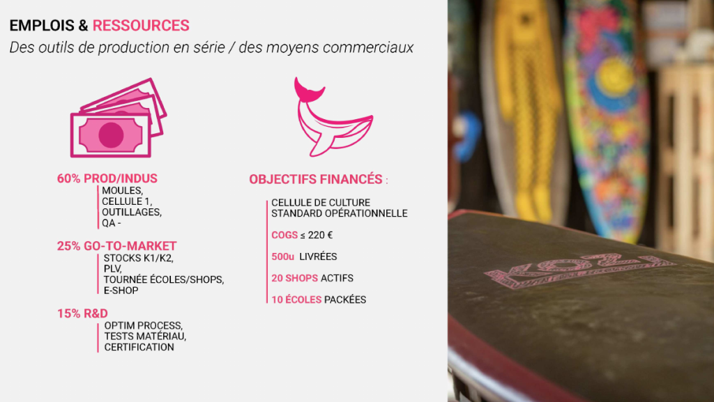 L’entreprise a développé un procédé industriel scalable, utilisant des moules 3D et des matériaux à 95 % végétaux et minéraux. Sa promesse : une planche locale, performante, accessible et respectueuse de l’océan.