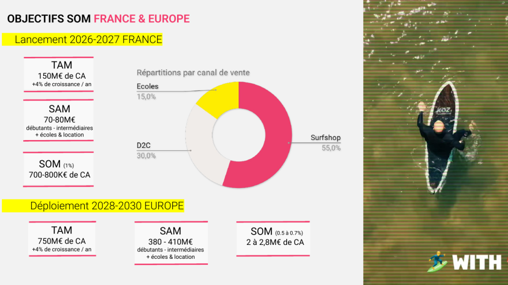 • Potentiel de marché : +4 %/an de croissance sur le surf, forte traction D2C, sensibilisation écologique croissante.